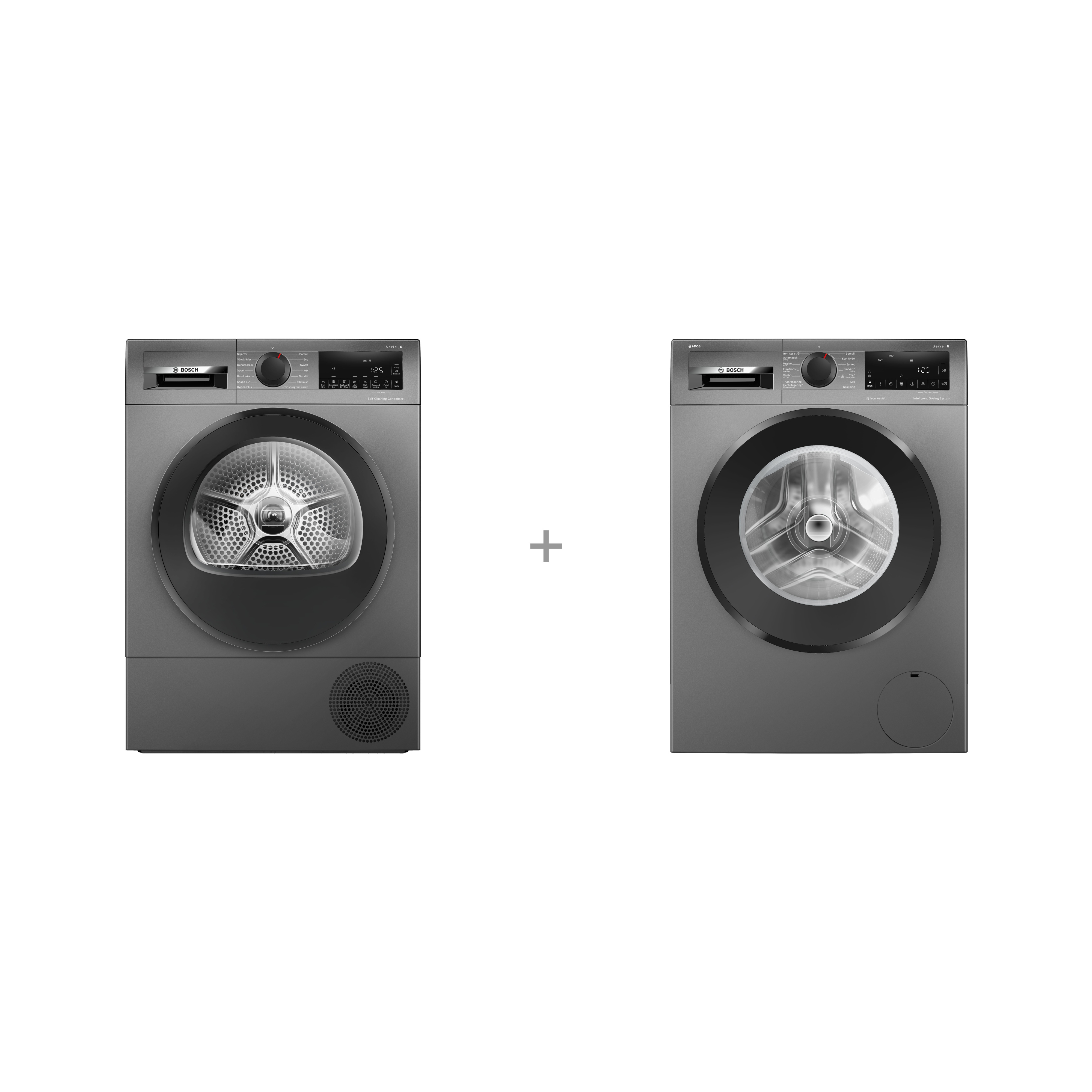 Bosch-pesutorni • Pesukoneen täyttömäärä 9 kg • Kuivausrummun täyttömäärä 9 kg • Mukana kiinteä väliasennussarja