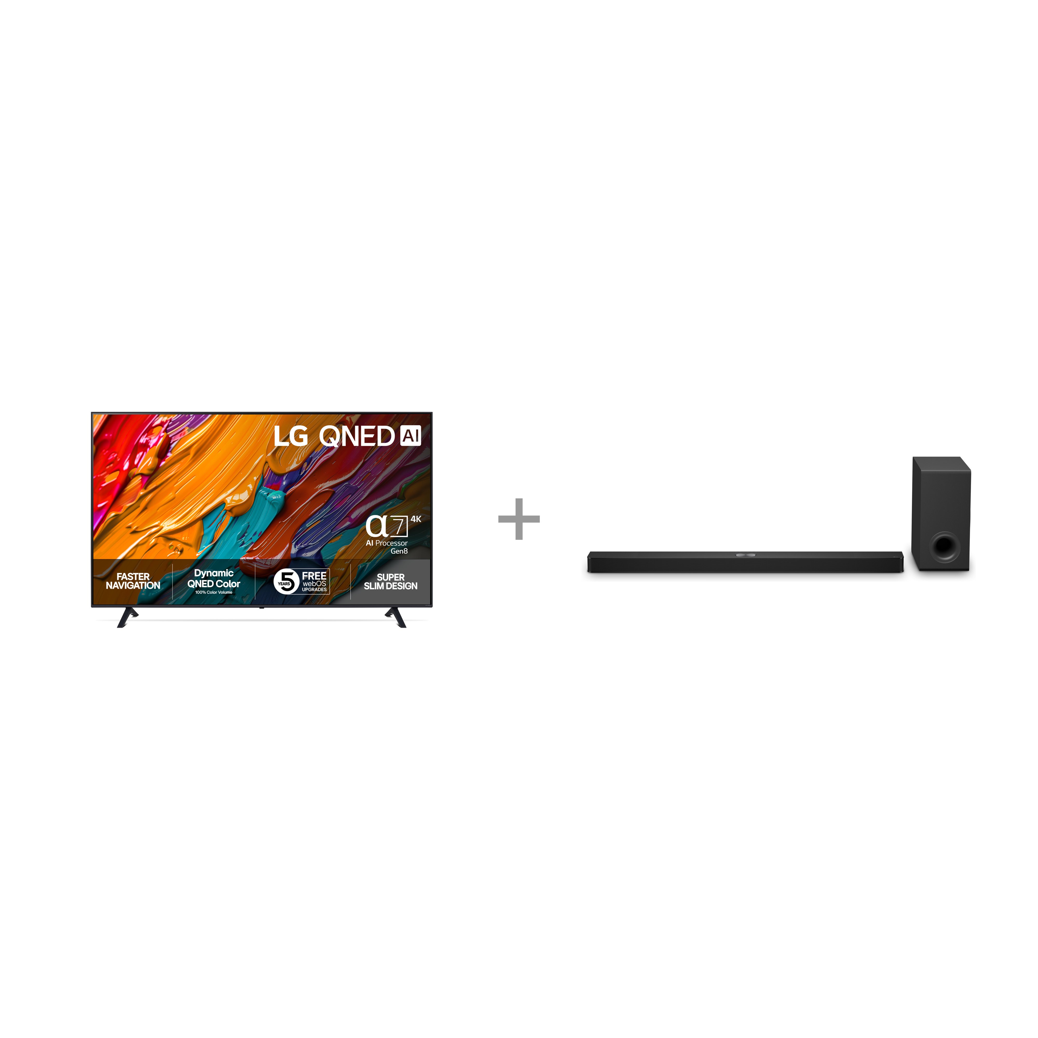 Kaikki mitä tarvitset kunnon katseluelämykseen. Saat telkkarin ja soundbarin, jotka toimivat täydellisesti yhdessä ja säästät selvästi verrattuna siihen, että ostaisit ne erikseen. Helppo valinta, hyvä diili!